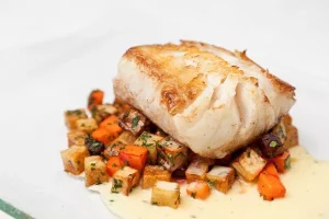 Top 4 oz roasted cod with 2 Tbsp warmed salsa and 1 roughly chopped large broiled russet potato on the side. Serve with 1/4 sliced avocado, and a hardboiled egg on the side.