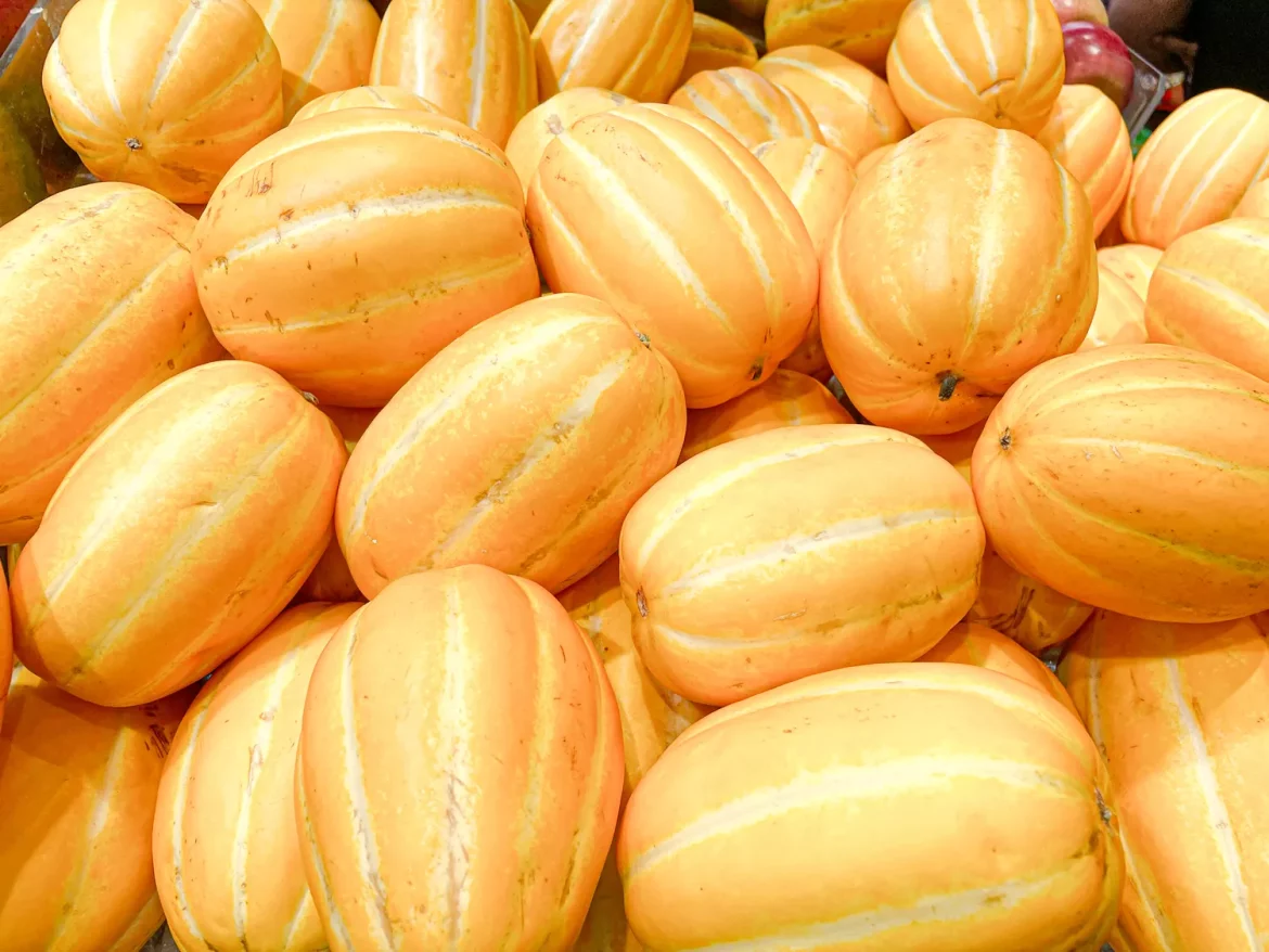 - Crenshaw Melon: This melon has a yellowish-green skin with a sweet, juicy, orange flesh. It’s a blend of cantaloupe and honeydew characteristics.