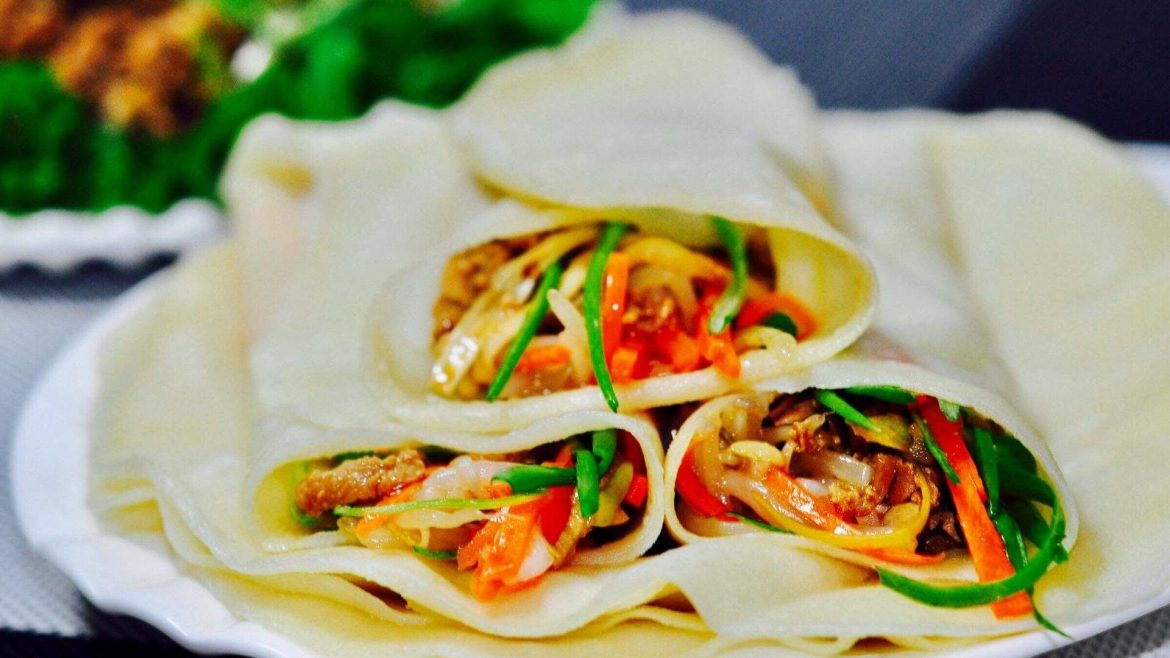 In the realm of culinary arts, the spring pancake stands as a testament to the elegance of simplicity. Thin yet tender, these pancakes are a universally cherished delight, transcending age and time, never losing their softness, even as leftovers. My favored rendition involves a spread of sweet bean sauce, a mosaic of potato shreds, mung bean sprouts, julienned ham, egg crepe strips, green onions, and cucumber sticks. But why not let your imagination take the lead? Perhaps add some shredded meat or roll in some roast duck for a twist.